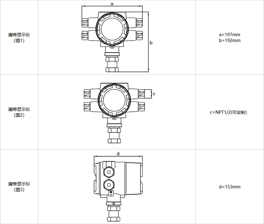 可選配多點平均溫度計、壓力變送器等溫度、壓力儀表實現溫度、壓力值的罐下顯示